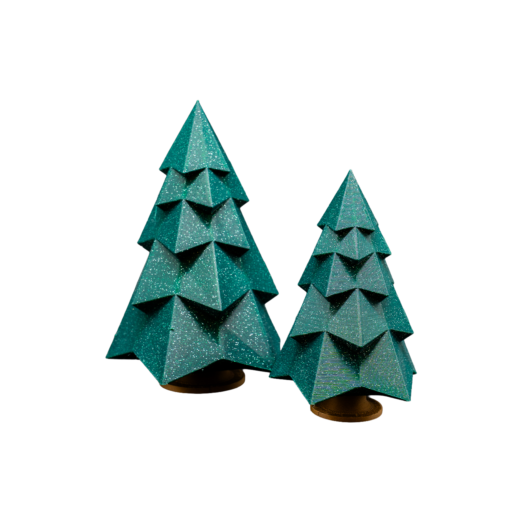 Verleihe deiner Weihnachtsdekoration das gewisse Extra mit unserem 3D-Tannenbaum Zweier-Set! Die beiden modern und geometrisch gestalteten Bäume werden im 3D-Druckverfahren gefertigt und begeistern durch ihre edle Glitzeroptik. Ideal als Tischdeko, als Akzent auf der Fensterbank oder als ausgefallenes Geschenk – dieses Set bringt festlichen Glanz und einen Hauch von Innovation in jeden Raum. Robust und langlebig, eignet sich das Duo perfekt für alle, die stylische und originelle Winterdeko lieben. Für Technikfans und Designbegeisterte – doppelte Weihnachtsfreude im Set!