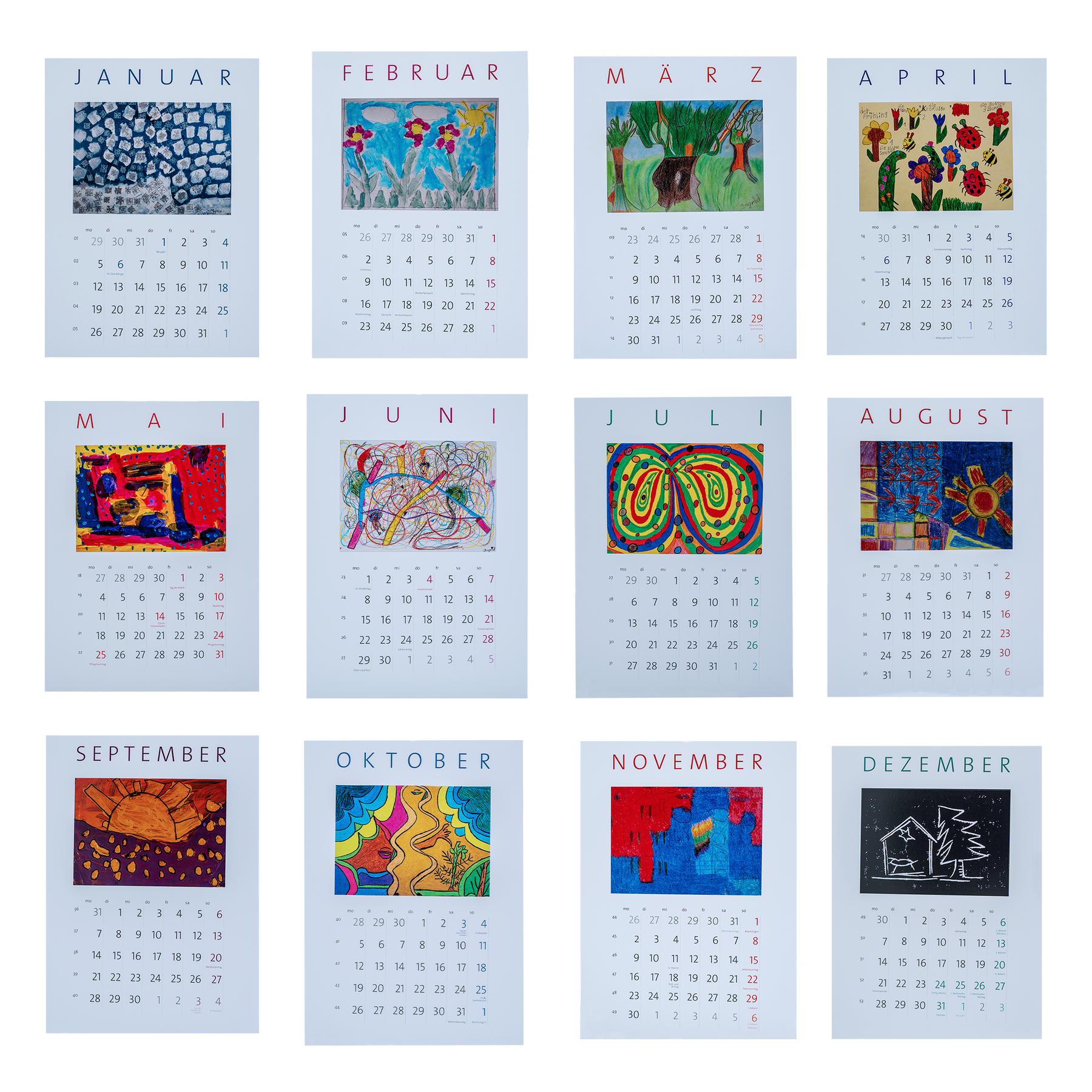 Halten Sie im nächsten Jahr Ihre Termine im Blick. Unser farbenfroher, ansprechender und ausdrucksstarker Kalender begleitet Sie mit 12 wunderschönen Motiven aus dem Kunst-Werk-Haus durch das Jahr 2026. Die Motive zeigen Arbeiten verschiedener KünstlerInnen aus unserem Atelier. Die Bilder sind heraustrennbar und können als Postkarten versendet werden.